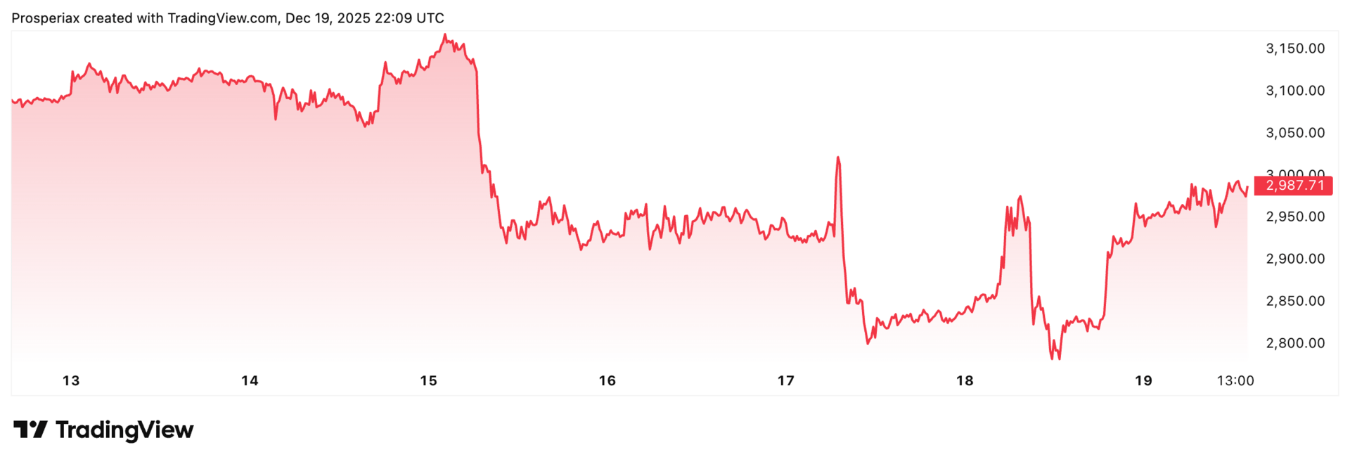 Cryptocurrencies weakened alongside broader risk assets. Bitcoin slipped modestly and failed to participate in late-week equity gains. Ethereum and higher-beta altcoins declined more sharply as year-end rebalancing and fund outflows weighed on sentiment. ETF withdrawals and regulatory uncertainty continued to pressure the space despite a more favorable macro backdrop.