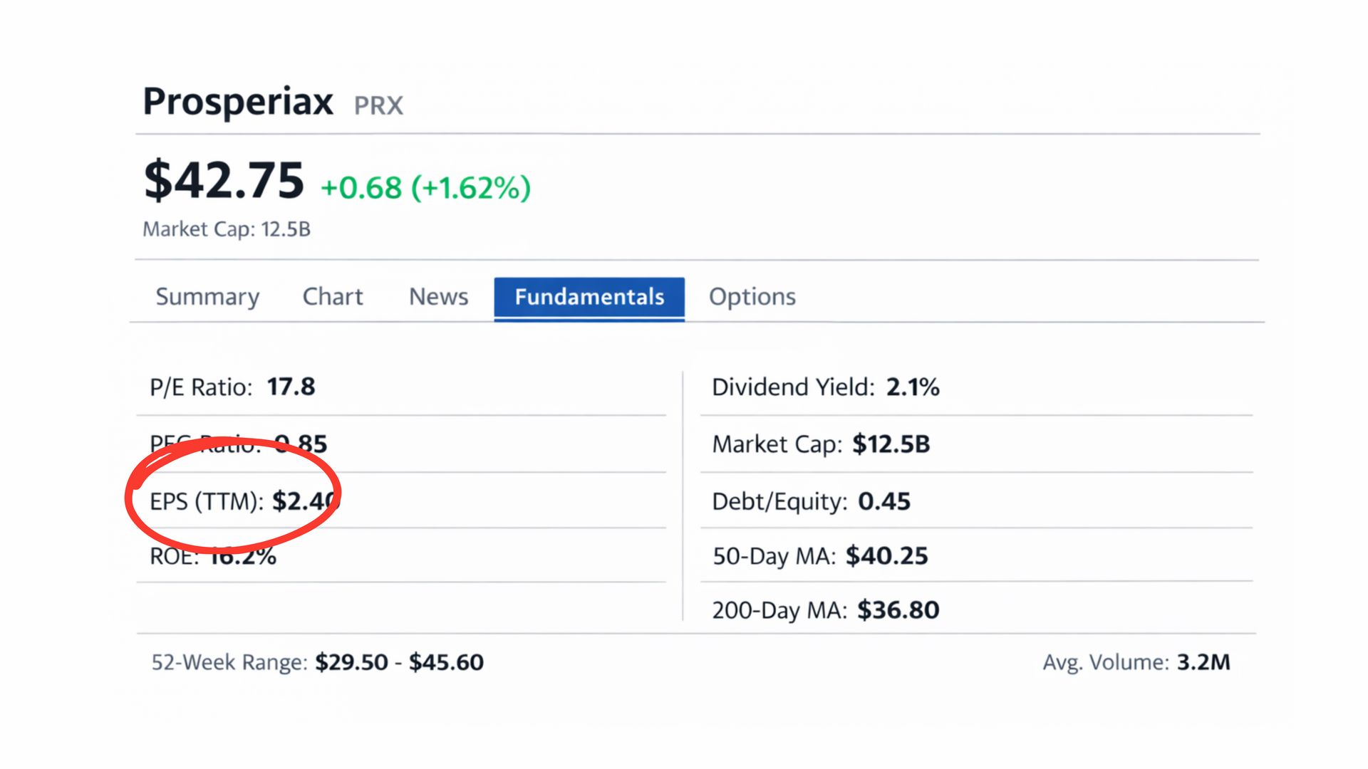 To show how this works in practice, we are going to walk through a single fundamentals page step by step using the greatest company, Prosperiax (PRX). This is not about picking a stock. It is about learning how to read one.