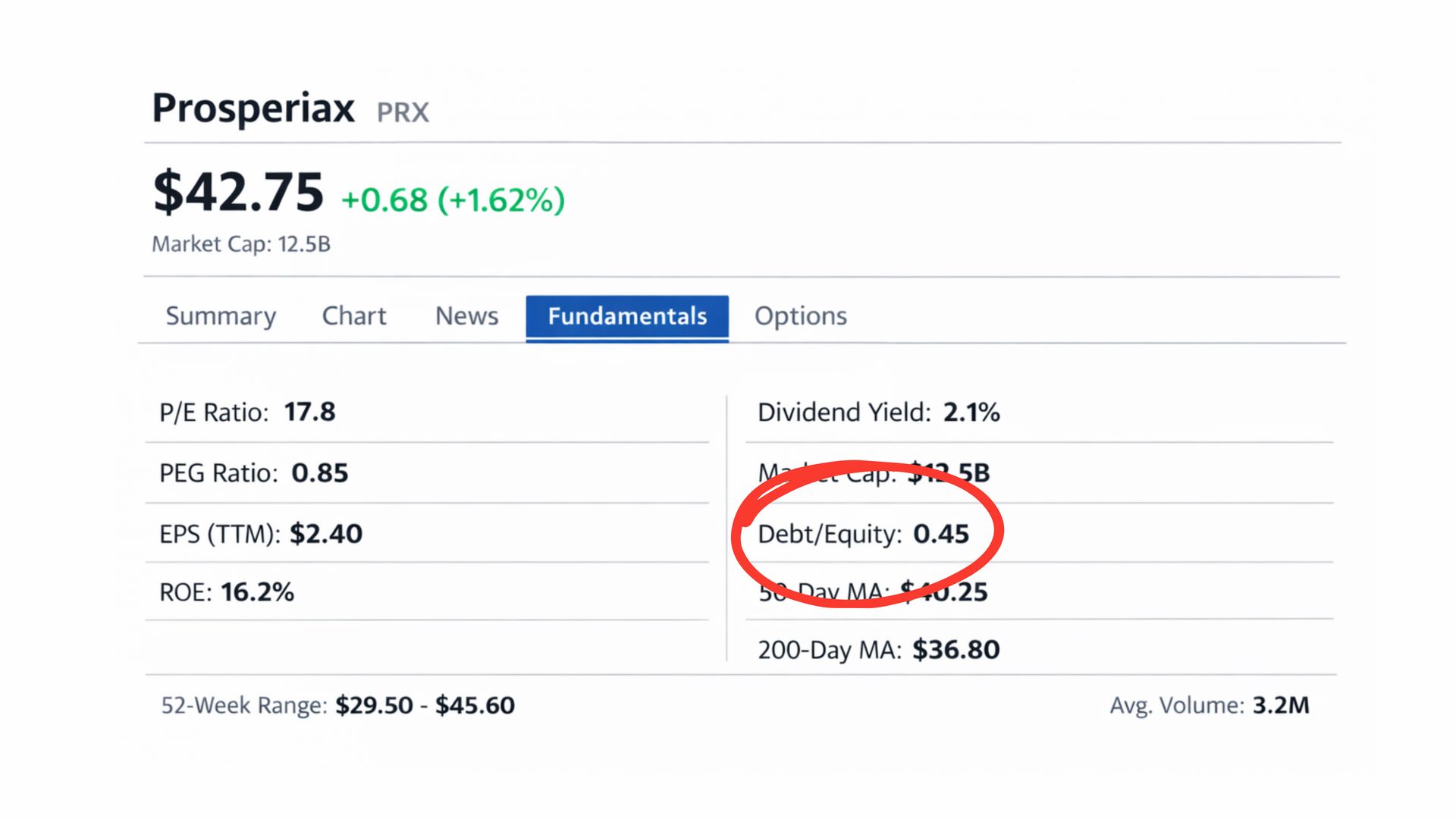 On the right side of the image, you see Debt to Equity of 0.45.